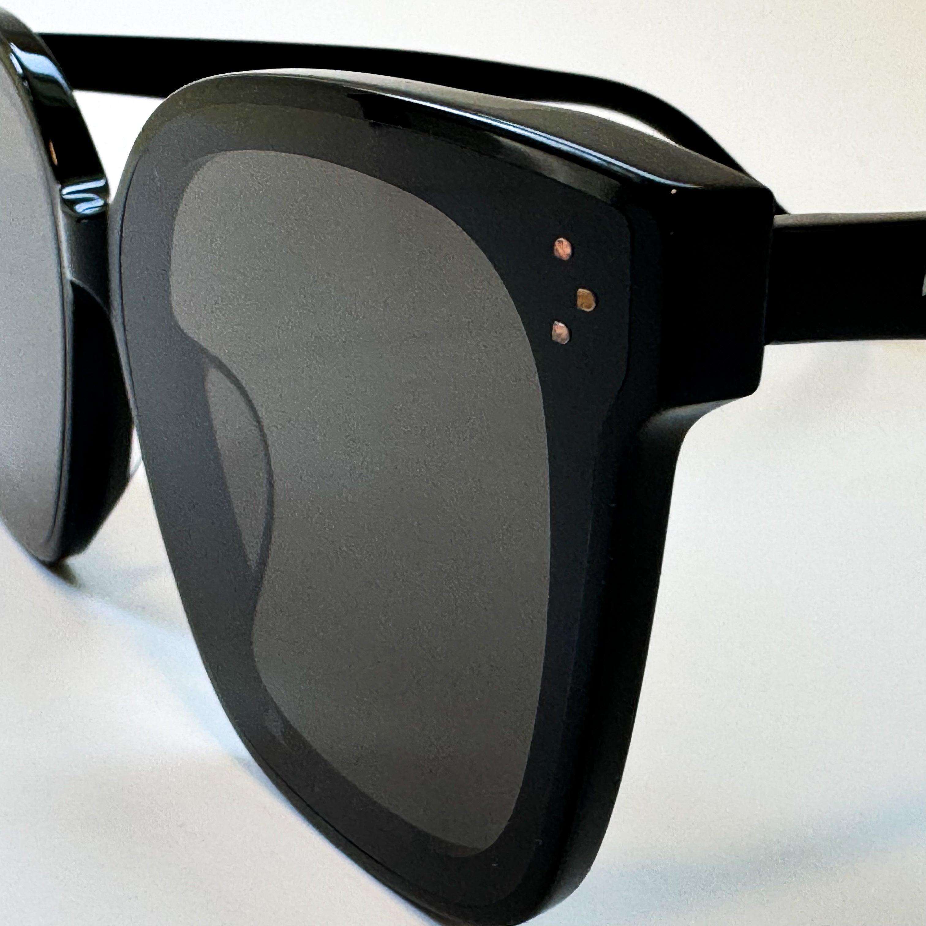 A large black square frame made of acetate featuring non-polarized nylon lenses to let you see in the dark on your big night out. This design is enhanced by three bullet-shaped pins in rose gold on the frames, and it is finished with the "Vasa Records x NevadaSYSTEM" logo engraved on the temples.